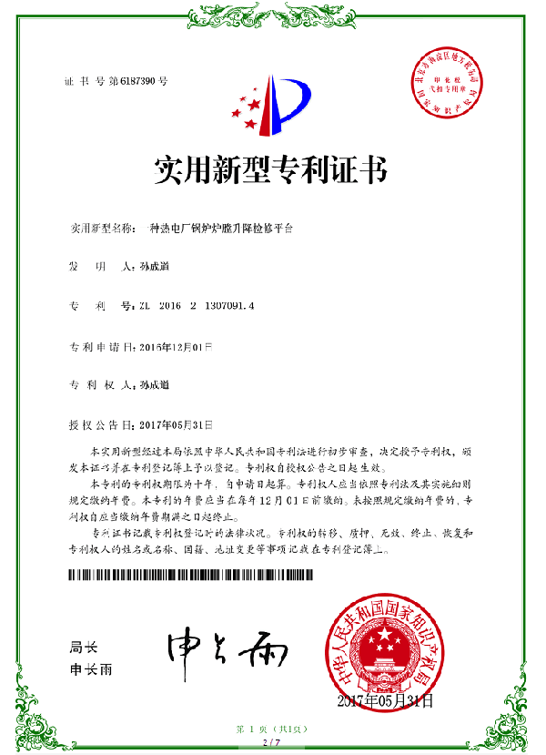 專利碳鋼結構強度高、重量輕,比鋁合金材質的實用性強,經濟耐用。使用中遇到損壞變形,電廠檢修人員容易整形維修!